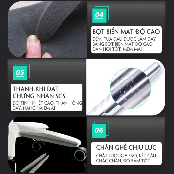 • Thanh khí đạt chứng chỉ SGS có độ tinh khiết cao, thành ống dày, nâng hạ êm ái