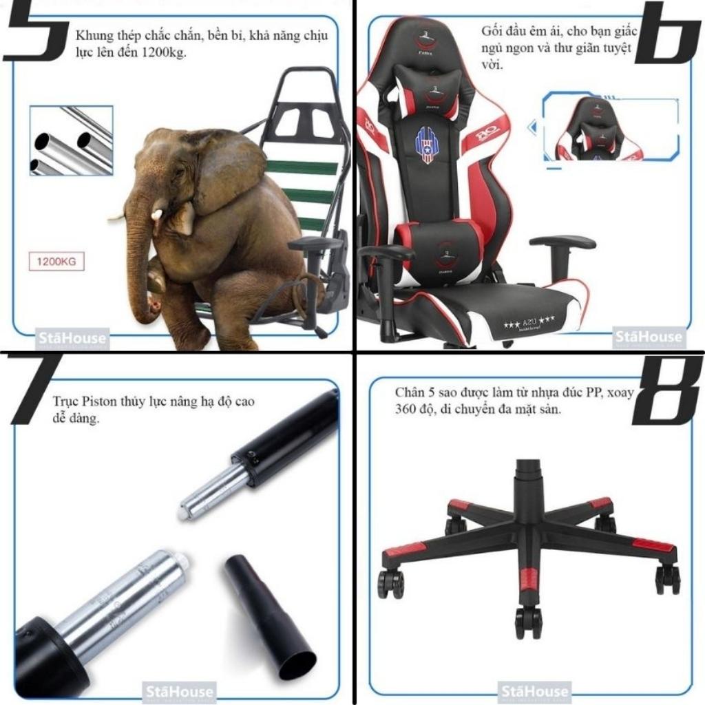 – Piston nén khí cao cấp chịu tải trọng lên đến 1200kg thoải mái ngồi mà không lo bị đổ.