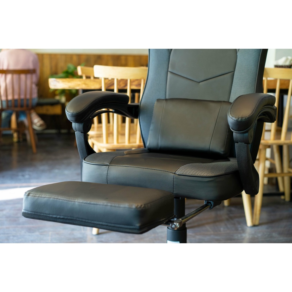 - Ghế ngã được 150 độ, kèm gác chân duỗi thẳng êm ái, có thể kéo ra hoặc đẩy vào cất khi không muốn sử dụng gác chân, tiện lợi vô cùng.