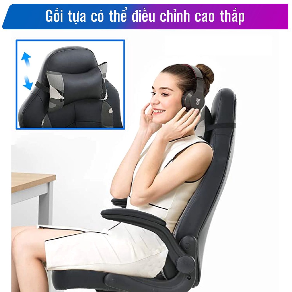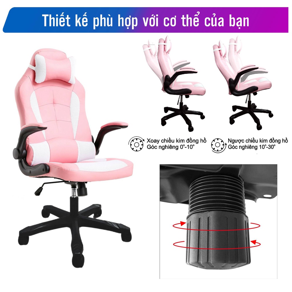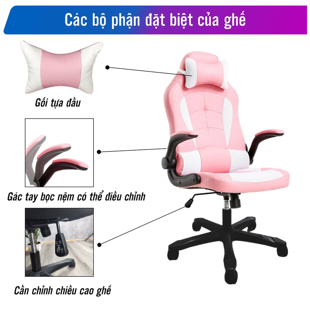 * Lưu ý: Để hỗ trợ tư thế ngồi thoải mái thuận tiện cho cả làm việc và chơi game, ghế không trang bị tính năng ngả lưng.