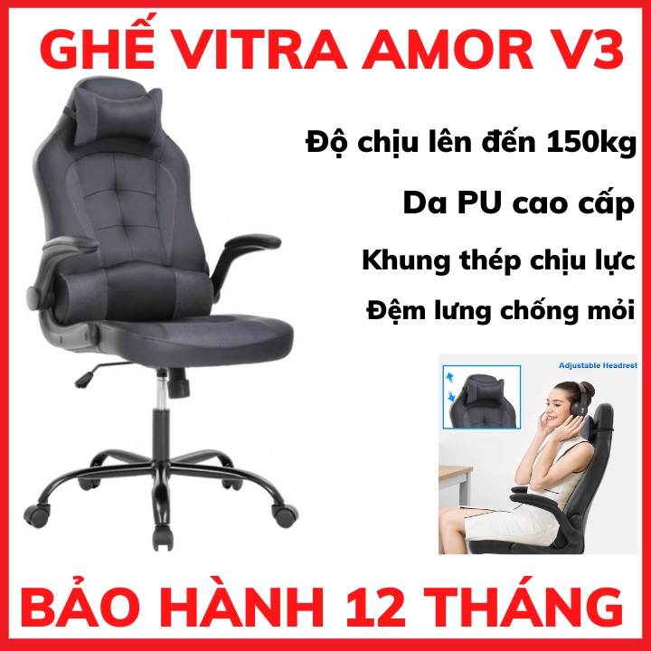 Giới thiệu Ghế Gaming Vitra Amor V3 Grey - Ghế Chơi Game Chất liệu Da PU cao cấp Đi kèm Đệm Lưng Đệm Cổ Chống Đau, Chống Mỏi