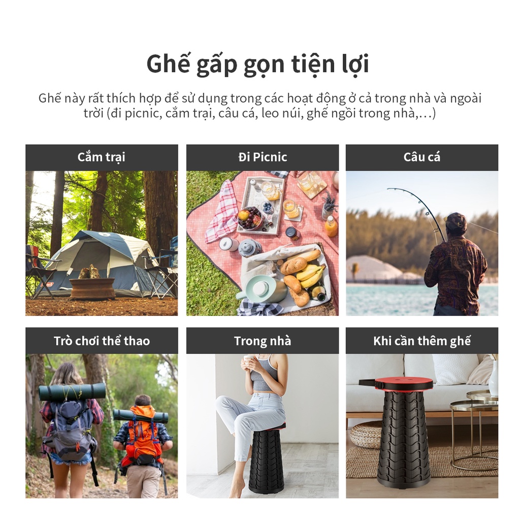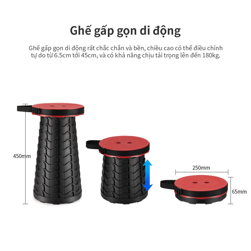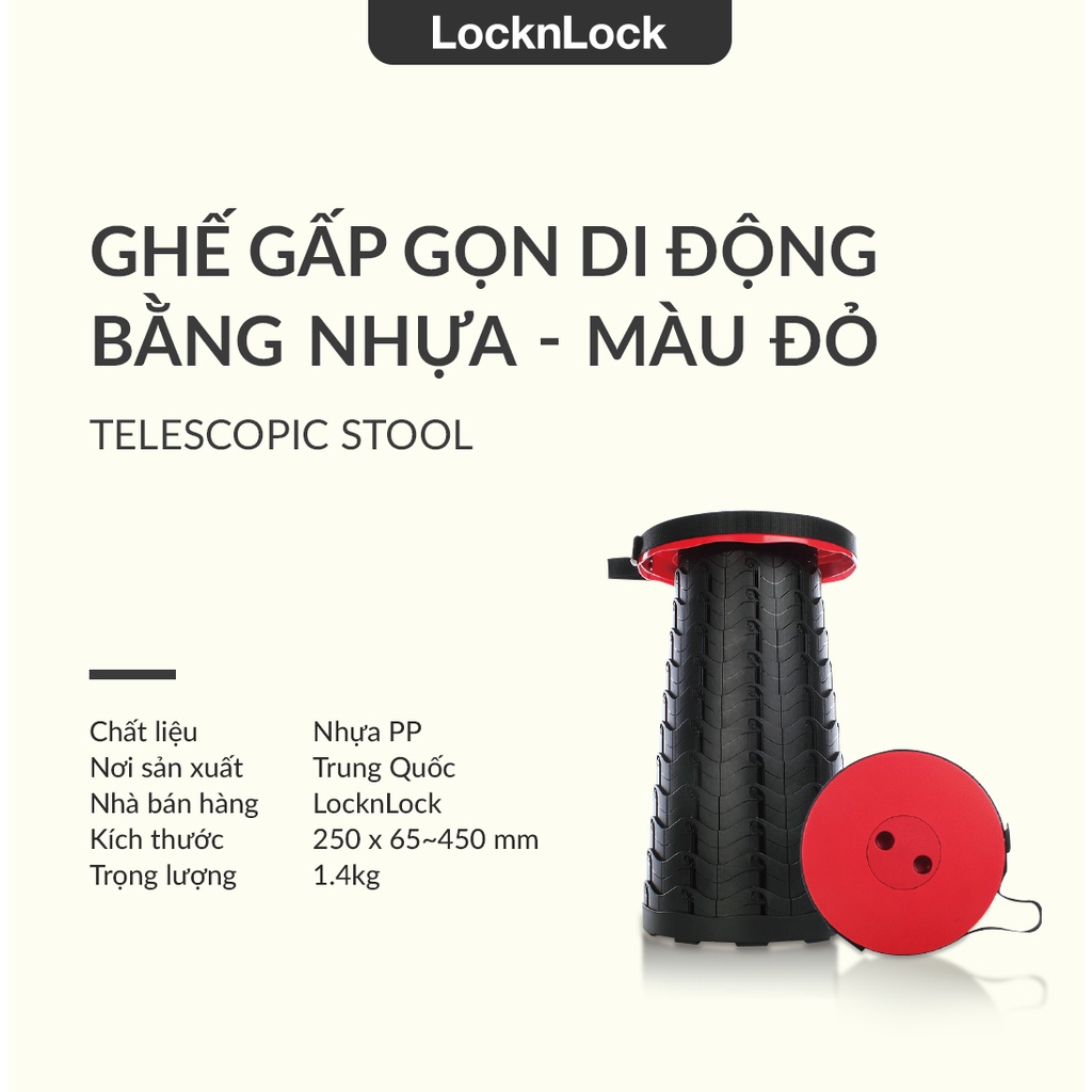 Nhà cửa & Đời sống > Nội thất > Ghế, ghế dài, ghế đẩu || [Mã LIFELOCK253 giảm 12% đơn 250K] Ghế gấp gọn di động bằng nhựa Lock&Lock Telescopic Stool - Màu đỏ LHI519REDCòn hàng