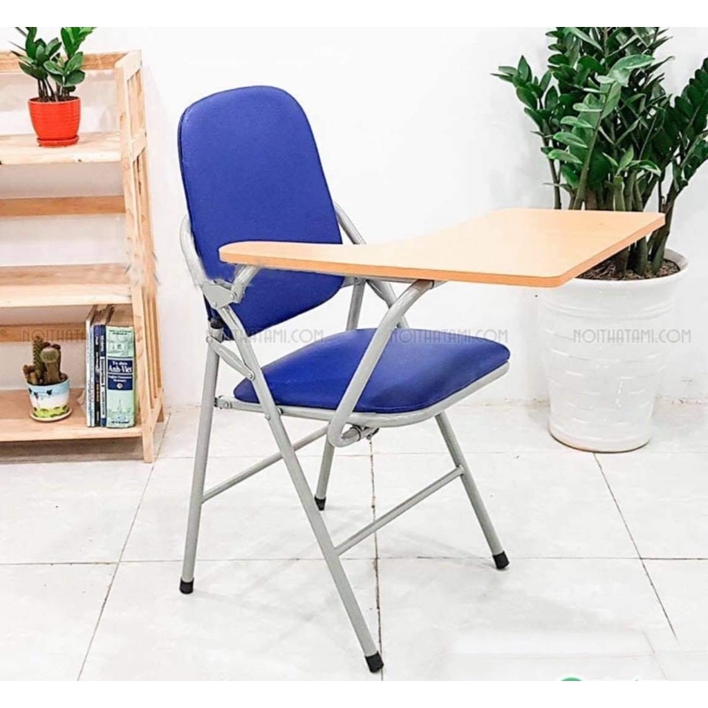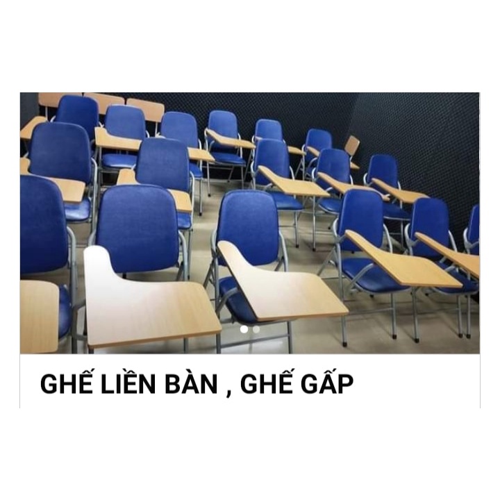 Ghế gấp liền bàn được thiết kế đa công năng sử dụng, vừa có thể làm ghế ngồi, vừa có thể áp dụng cho kiểu bàn ghế hội thảo, cần đến mặt bàn để ghi chép nhanh, nhằm tiết kiệm tối đa diện tích phòng. Sản phẩm được sử dụng nhiều trong các trung tâm Anh ngữ, phòng họp, phòng Lab,