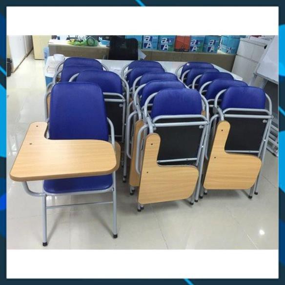 Ghế gấp liền bàn được thiết kế đa công năng sử dụng, vừa có thể làm ghế ngồi, vừa có thể áp dụng cho kiểu bàn ghế hội thảo, cần đến mặt bàn để ghi chép nhanh, nhằm tiết kiệm tối đa diện tích phòng. Sản phẩm được sử dụng nhiều trong các trung tâm Anh ngữ, phòng họp, phòng Lab,