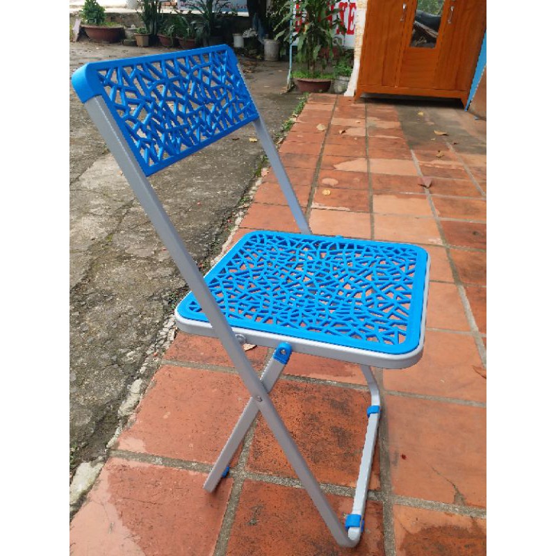 Ghế gấp khung thép mạ inox, đệm tựa nhựa.Kích thước : W446 x D490 x H830 mm