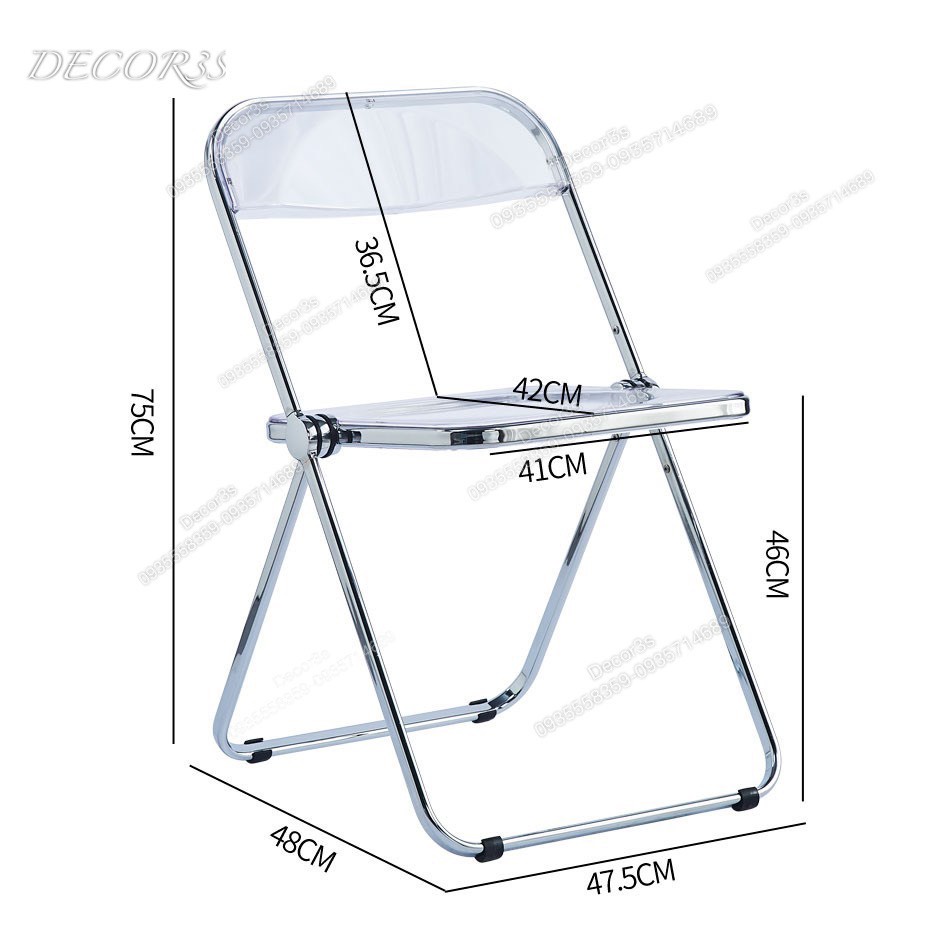 Ghế gập nhựa trong suốt.Chất liệu : inox