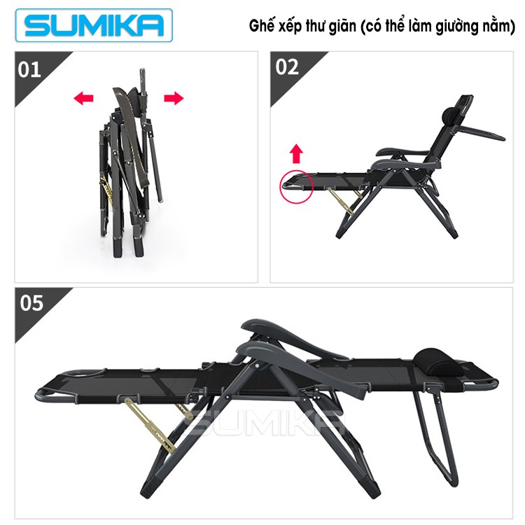 Ghế gấp xếp thư giãn cao cấp Sumika 168- có thể ngã thành giường-(Nâng đầu, nâng chân nhiều góc độ)