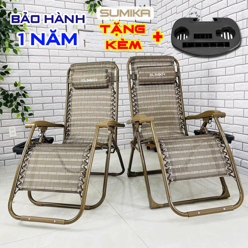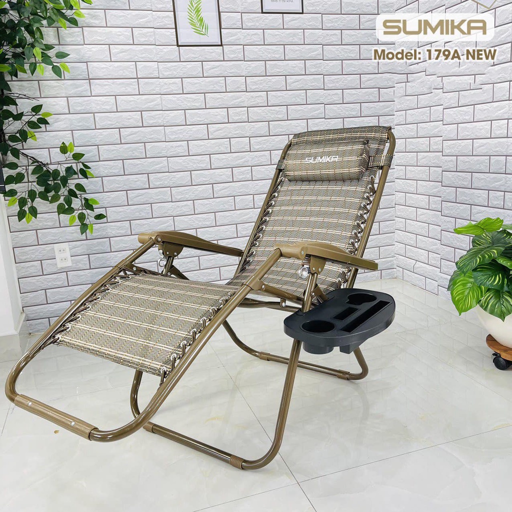 Ghế gấp xếp thư giãn đa năng SUMIKA 179 NEW 2022 TẶNG KHAY ĐỂ LY (bảo hành 1 năm, tải trọng 300kg),ghế bố