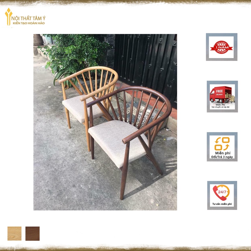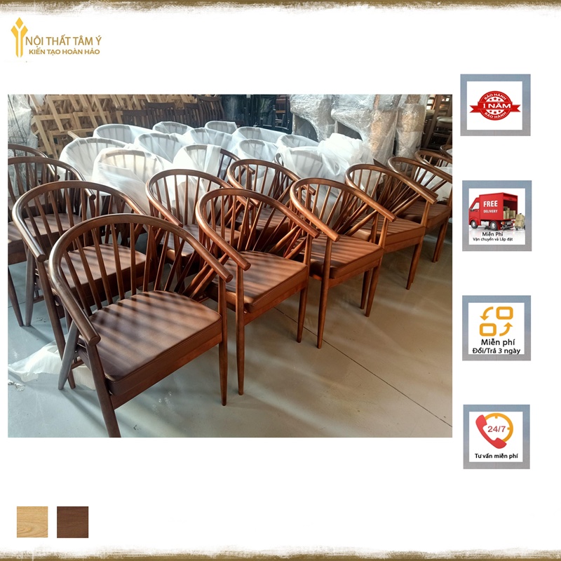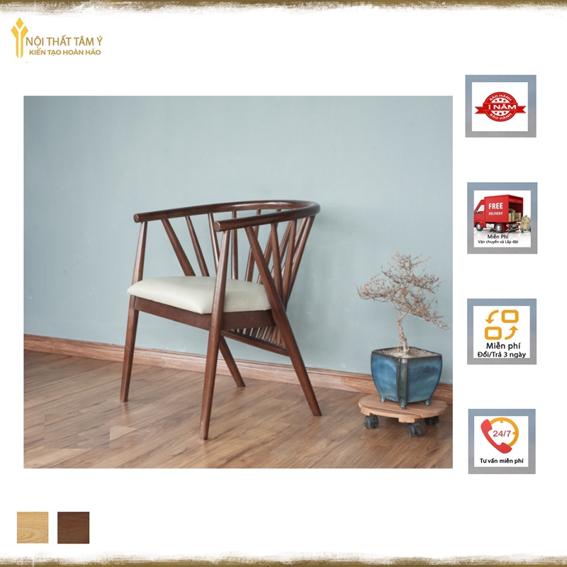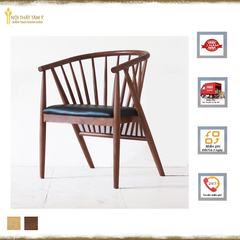 Ghế Genny là thiết kế của Centro Ricerche MAAM. Với giáng vẻ yêu kiều, cấu tạo từ các nan gỗ bố trí bung tròn và xoay dần theo tựa lưng kết nối với phần chân đứng đầu mũi tên xiên. Giúp ôm trọn phần lưng người ngồi tạo cảm giác chắc chắn nhưng không kém phần thoải mái.- Chất liệu: Ghế gỗ cao su bọc Nệm simili