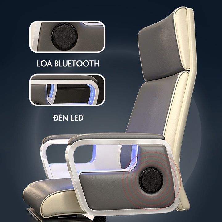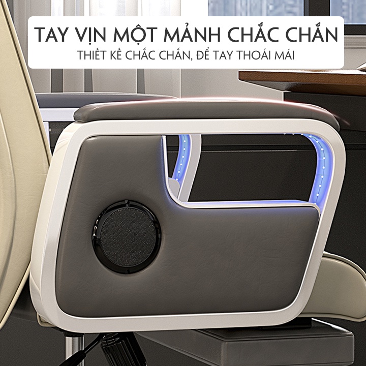 Ghế giám đốc cao cấp ngồi làm việc văn phòng có loa đèn led ngả chân xoay 360 độ