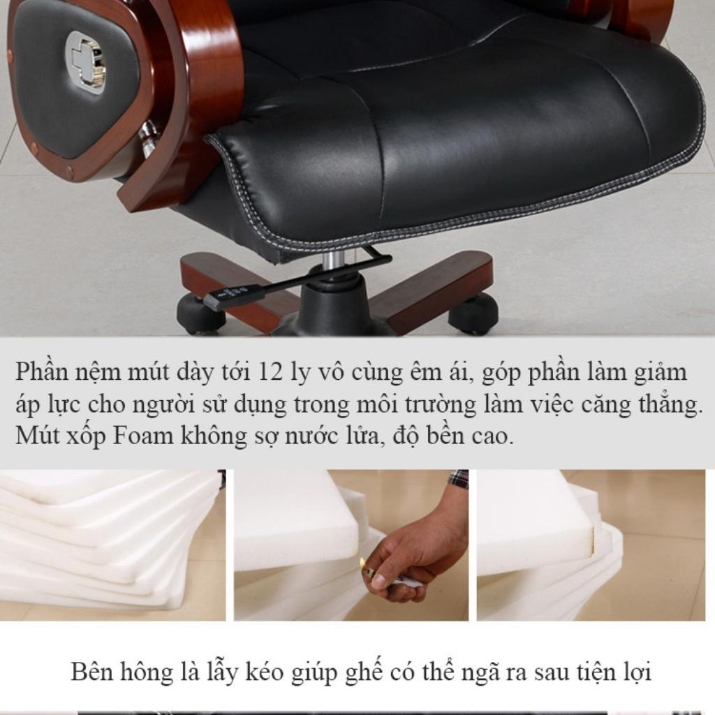 GHẾ GIÁM ĐỐC DA CHÂN XOAY - GD31Mặt ngồi: Đệm và lưng bọc da công nghiệp, tay gỗ tự nhiên sơn PU phủ bóng.