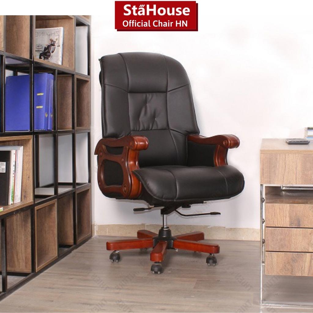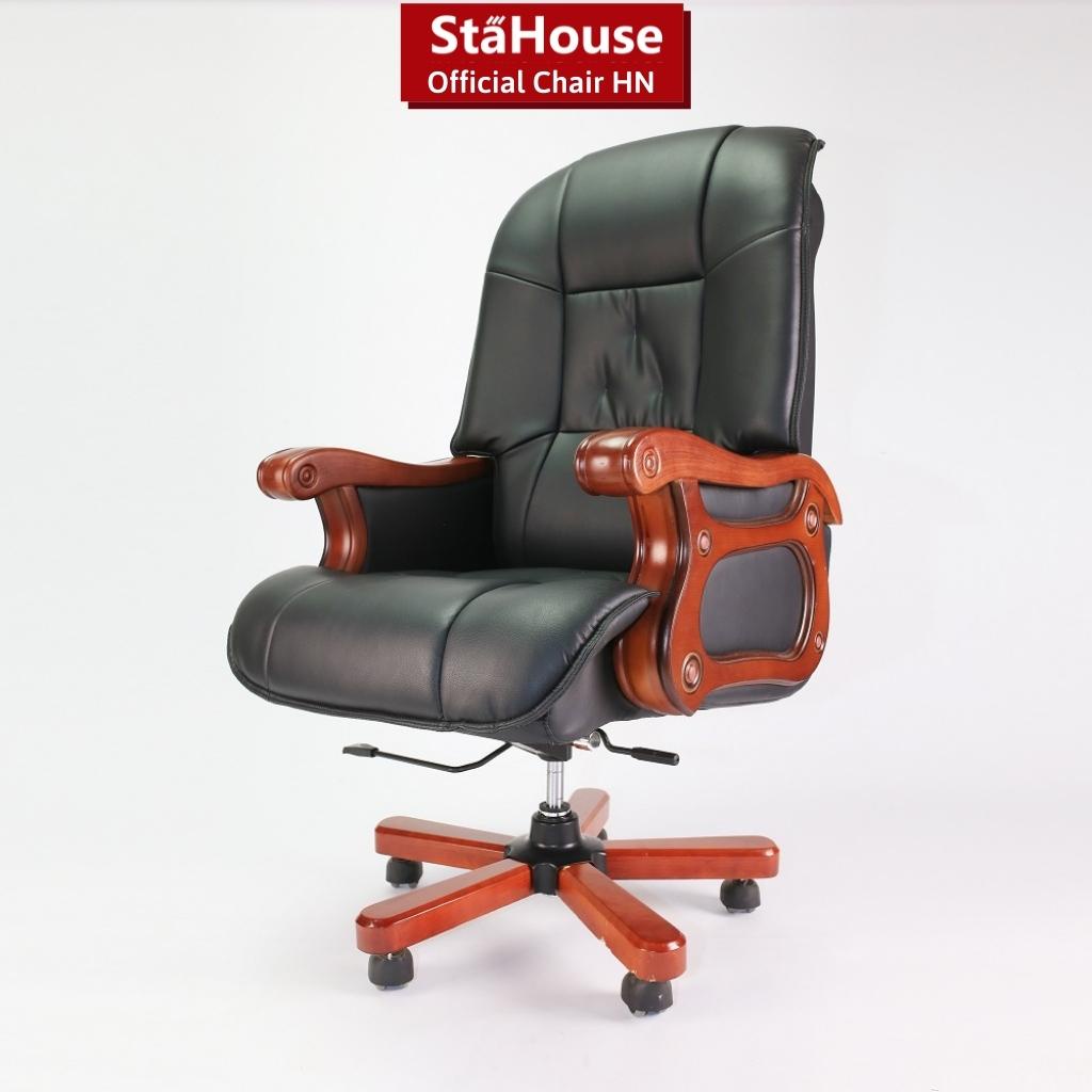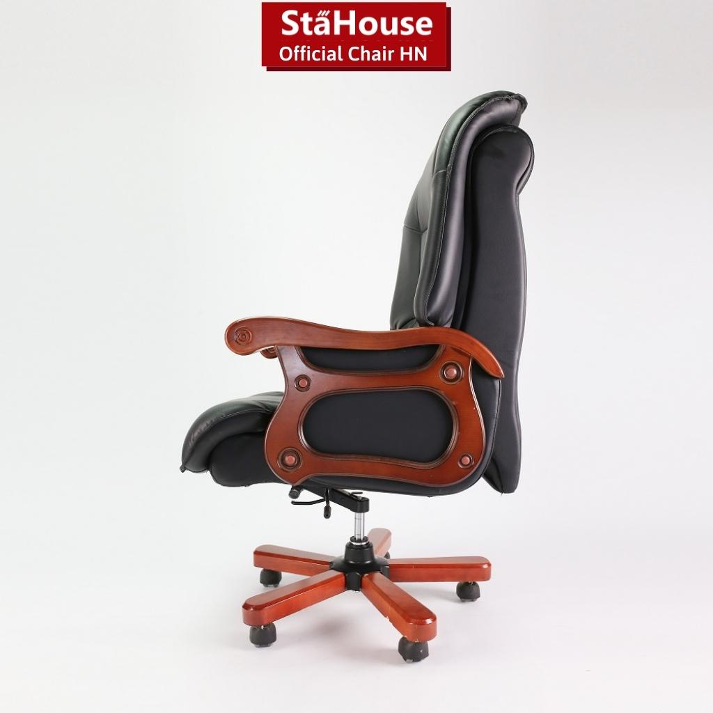 – Ghế văn phòng cao cấp tay vịn bằng gỗ sồi tự nhiên, bọc da bề mặt, liền lưng tựa mạnh mẽ sang trọng.