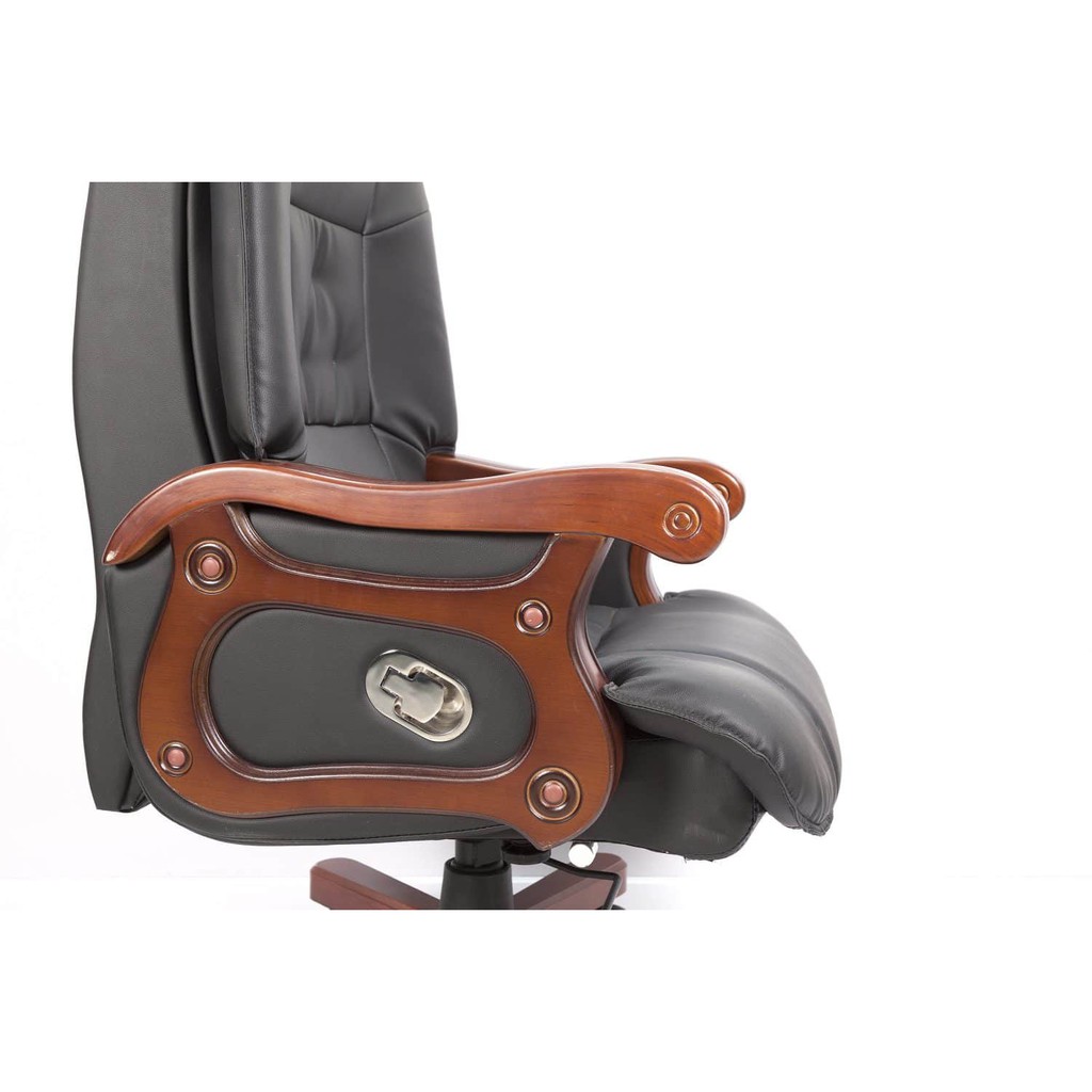 - Hai tay ghế được thiết kế tinh tế và đầy quyền lực, Khung và chân gỗ được chế tác trơn bóng tỉ mỉ, tạo cảm giác chắc chắn, sang trọng. Bên hông là lẫy kéo giúp ghế có thể ngã ra sau tiện lợi. Đặc biệt ghế còn có chức năng gật gù giúp người ngồi thư giãn hoặc cần tập trung suy nghĩ.