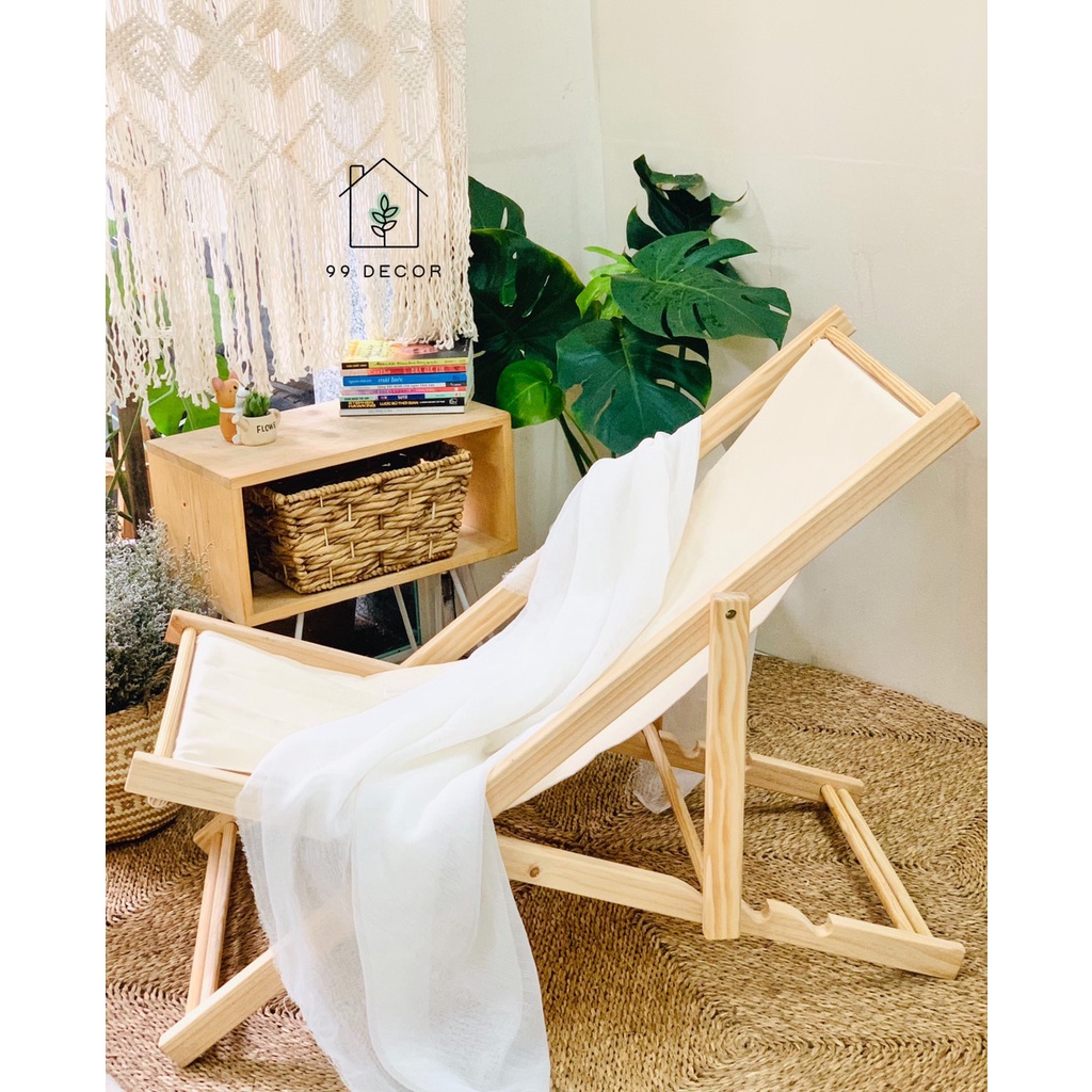 Ghế Gỗ Xếp Thư Giãn Vải Canvas Trong Nhà Ngoài Trời Phong Cách Vintage