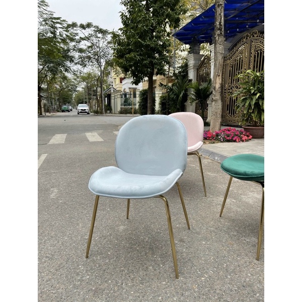 - Màu sắc: ghi nhạt, ghi đậm, xanh coban, hồng - Chất liệu: mặt ghế nỉ nhung/vải, chân mạ vàng - Xuất xứ: Hàng nhập khẩu 100%