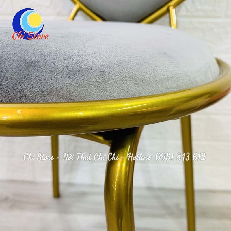 ⚜️Khung ghế trang điểm được làm từ kim loại sơn tĩnh điện bóng uốn lượn màu vàng gold chống han rỉ chắn chắn và cực kì bền theo thời gian nha. Dưới chân ghế trang điểm tim có lớp lót đế chống xước sàn nha.