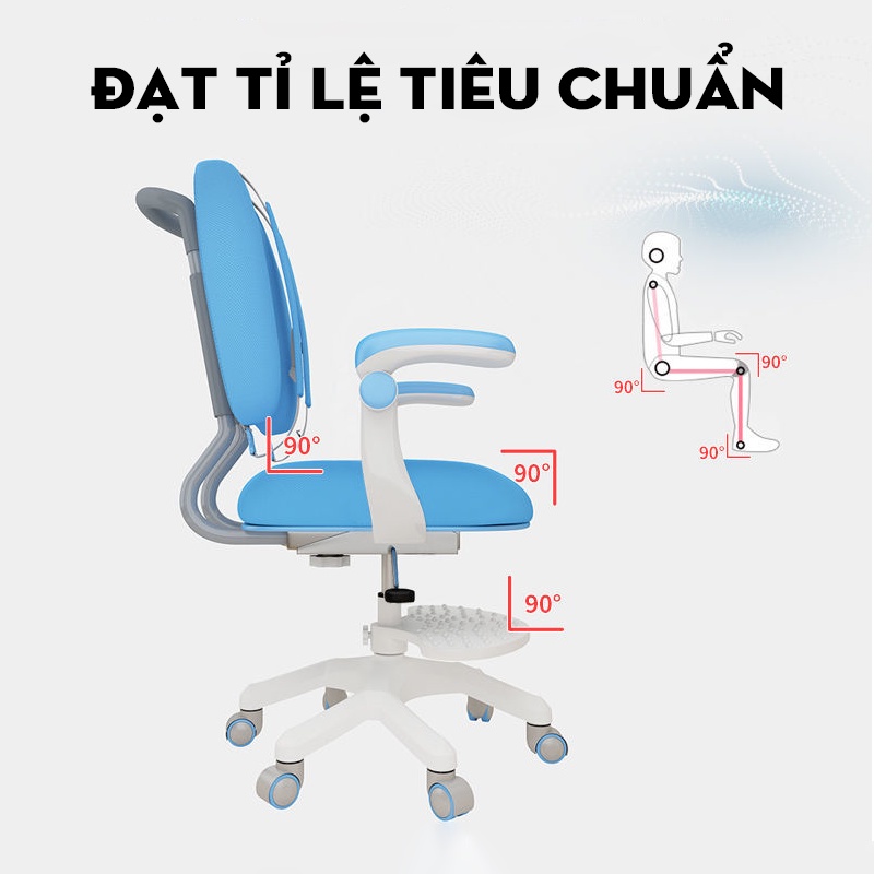 Ghế xoay học sinh cao cấp chống gù, chống cận, Ghế ngồi học tựa lưng đúng tư thế tăng chỉnh chiều cao bằng ben hơi