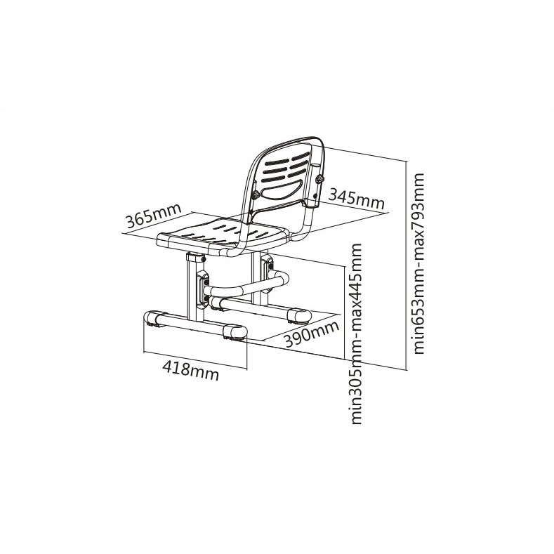 Ghế học sinh tiểu học A301 có khả năng điều chỉnh độ cao 7 mức từ 305mm tới 445mm phù hợp cho các bé độ tuổi từ mẫu giáo tới hết tiểu học.