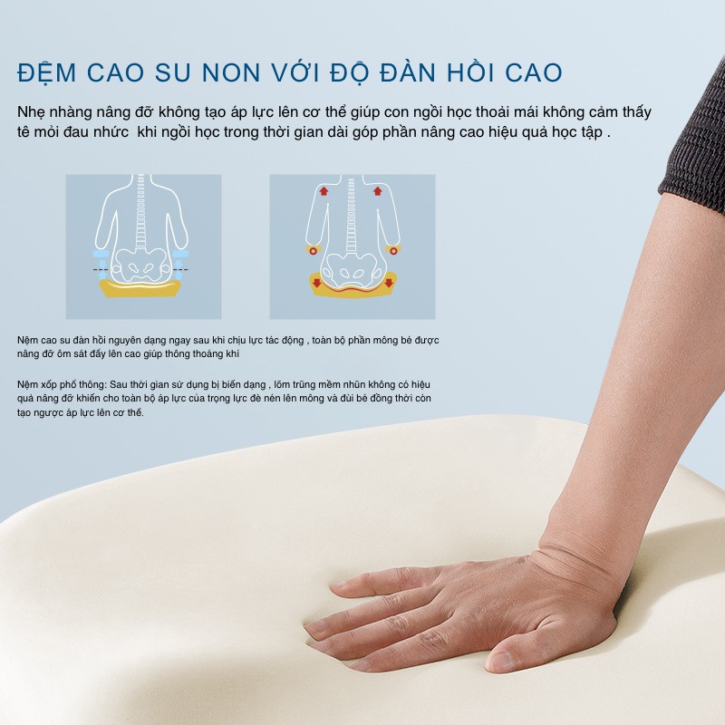 ✅ Đệm ngồi hỗ phân vùng tản lực: Hỗ trợ đàn hồi tản lực đều lên các vị trí giảm bớt áp lực lên mông bé ,cho con học tập thoải mái