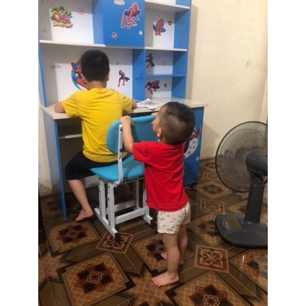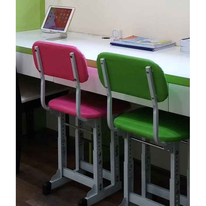 Ghế học sinh của bé này có thể ngồi với bàn cao của người lớn nhé các mẹ