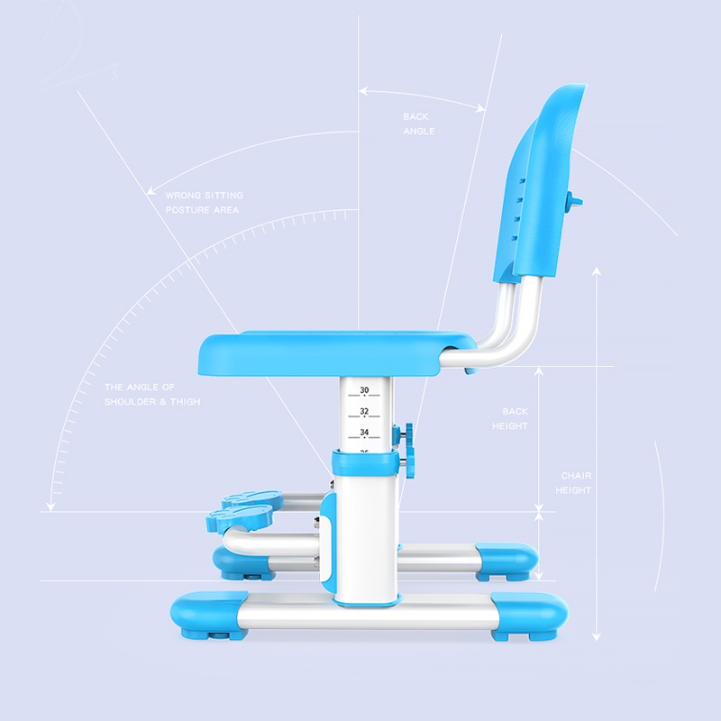 Giới thiệu Ghế học sinh thông minh chống gù tùy chỉnh độ cao có gác chân có dây đai và lớp đệm ngồi
