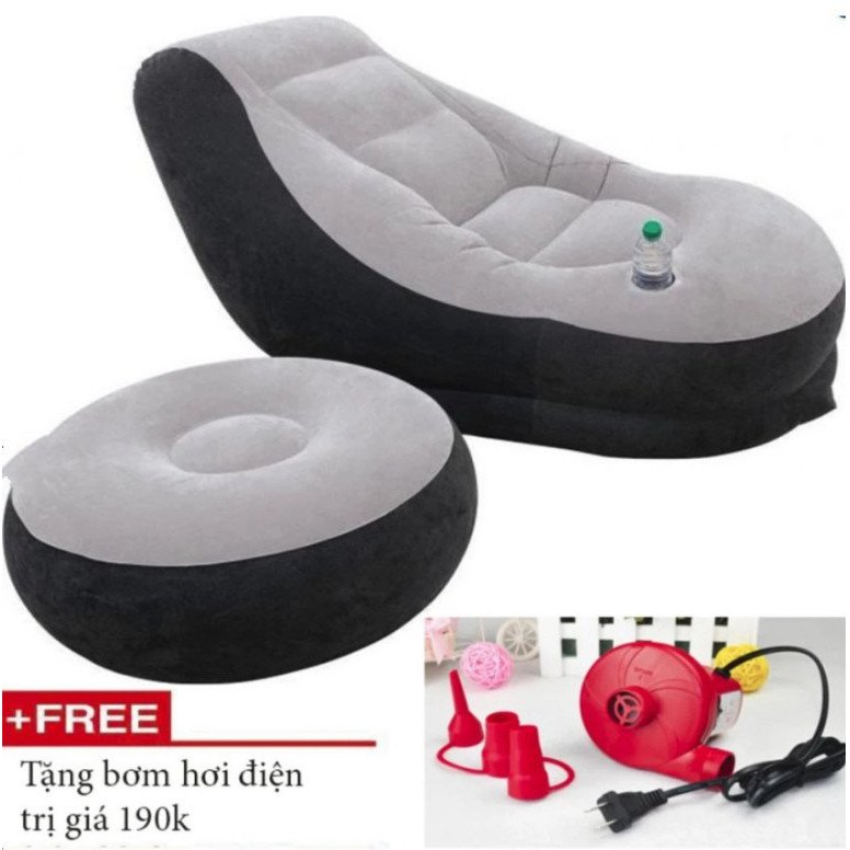 Ghế hơi tựa lưng bọc nhung Lazy Sofa, có đôn gác chân + Tặng kèm bơm hơi điện 220V