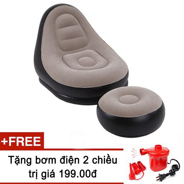 Ghế hơi tựa lưng bọc nhung(JL) cao cấp tặng bơm điện 2 chiều(Kingmart68)