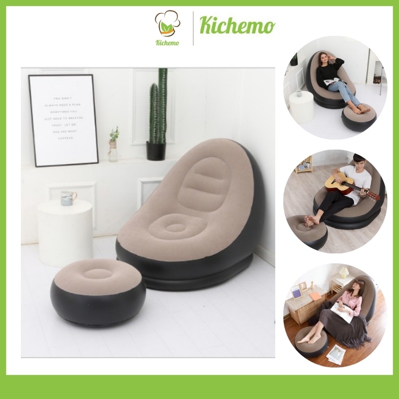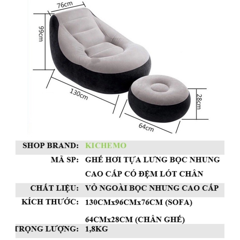 Ghế hơi tựa lưng cao cấp êm ái dùng cho cả gia đình thư giãn tặng kèm bơm hơi tiện lợi