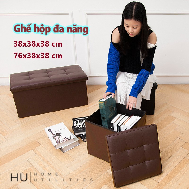 Nhà cửa & Đời sống > Nội thất > Ghế, ghế dài, ghế đẩu || Ghế Hộp Đa Năng Bọc Da Cao cấp, Thùng đựng đồ kiêm ghế ngồi chịu lực chắc chắn có thể gấp gọnCòn hàng