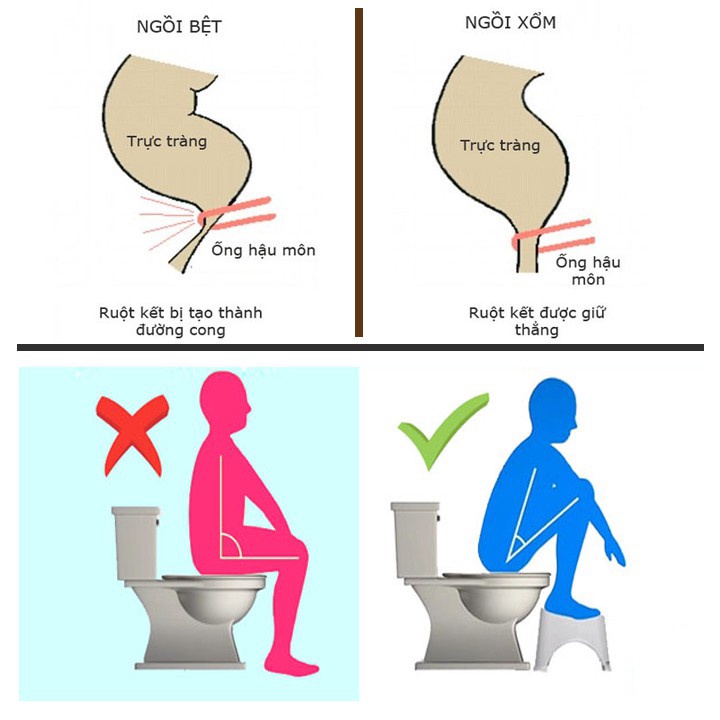 - Công dụng khi sử dụng ghế kê chân toilet: cải thiện tình trạng táo bón, cải thiện và hỗ trợ điều trị bệnh trĩ, ngăn ngừa tình trạng ung thư đại tràng, viêm đại tràng co thắt.