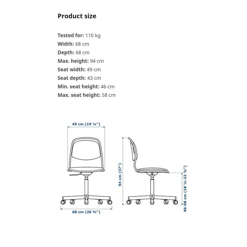 Nhà cửa & Đời sống > Nội thất > Ghế, ghế dài, ghế đẩu || Ghế làm việc IKEA OFJAL người lớnCòn hàng