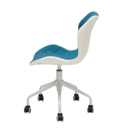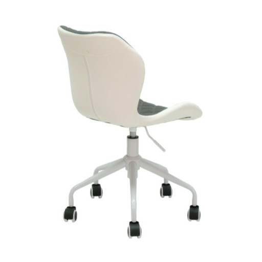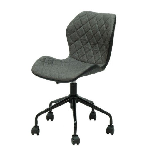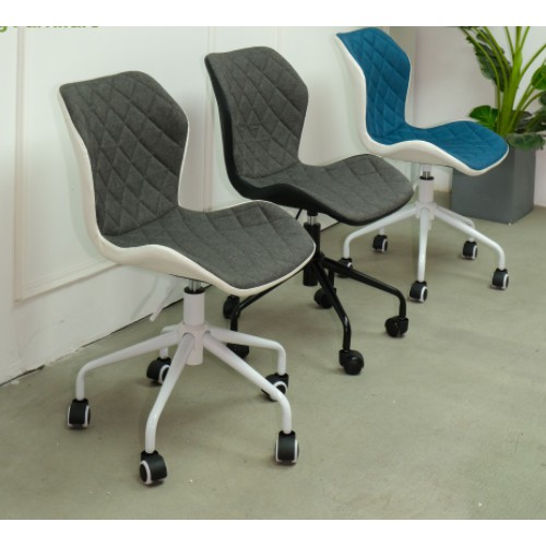 Một thiết kế đẹp mắt và ấn tượng cho không gian bàn làm việc của bạn. Đây là một mẫu ghế xoay, chân bánh xe, có cần trục tăng giảm chiều cao mặt ghế. Mặt ghế được làm bằng nệm mút bọc vải bố với ba tông màu chính lá xám đậm, đen, và xanh jean. Phía sau lưng ghế được bọc bằng da simili chống thấm ướt. Chân ghế được làm bằng sắt sơn tĩnh điện với các chi tiết hoàn thiện đẹp mắt và sắc xảo.Bánh xe của ghế được làm bằng chất liệu nhưa đúc, cực kỳ chắc chắn và di chuyển êm ái, chống trầy xước sàn nhà. Dưới mặt ghế và chân ghế là hệ thống cần gạt giúp bạn tăng giảm chiều cao mặt ghế dễ dàng. Ghế có khả năng xoay 360 độ giúp bạn linh động hơn trong quá trình làm việc.