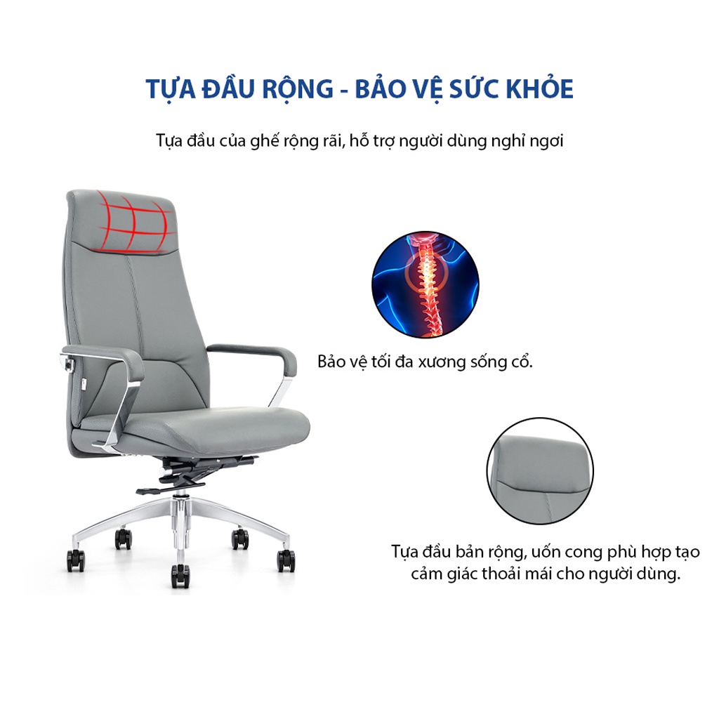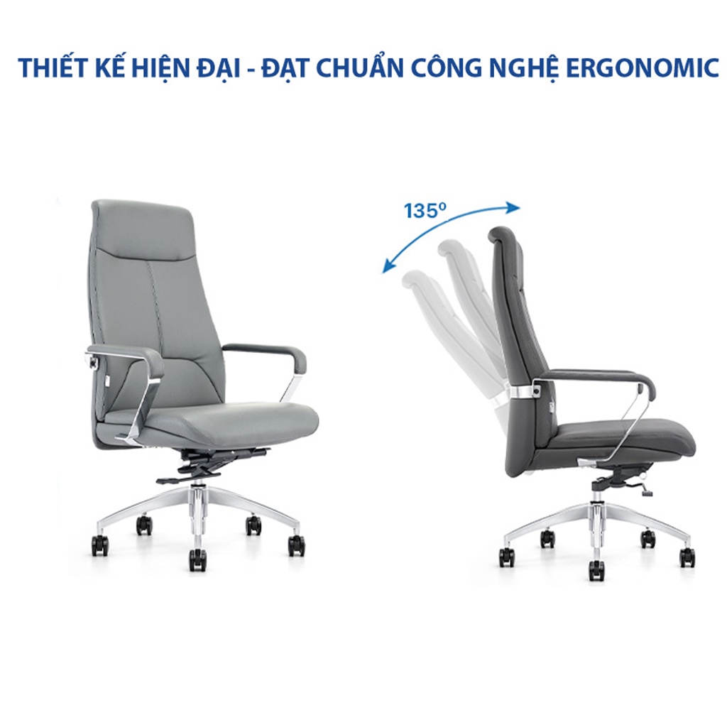 + Thiết kế lưng cao, ghế chân xoay với kiểu dáng hiện đại.