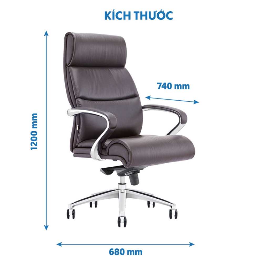 + Chiều rộng: 680mm, Chiều sâu 740mm, điều chỉnh chiều cao ghế 1200-1280mm