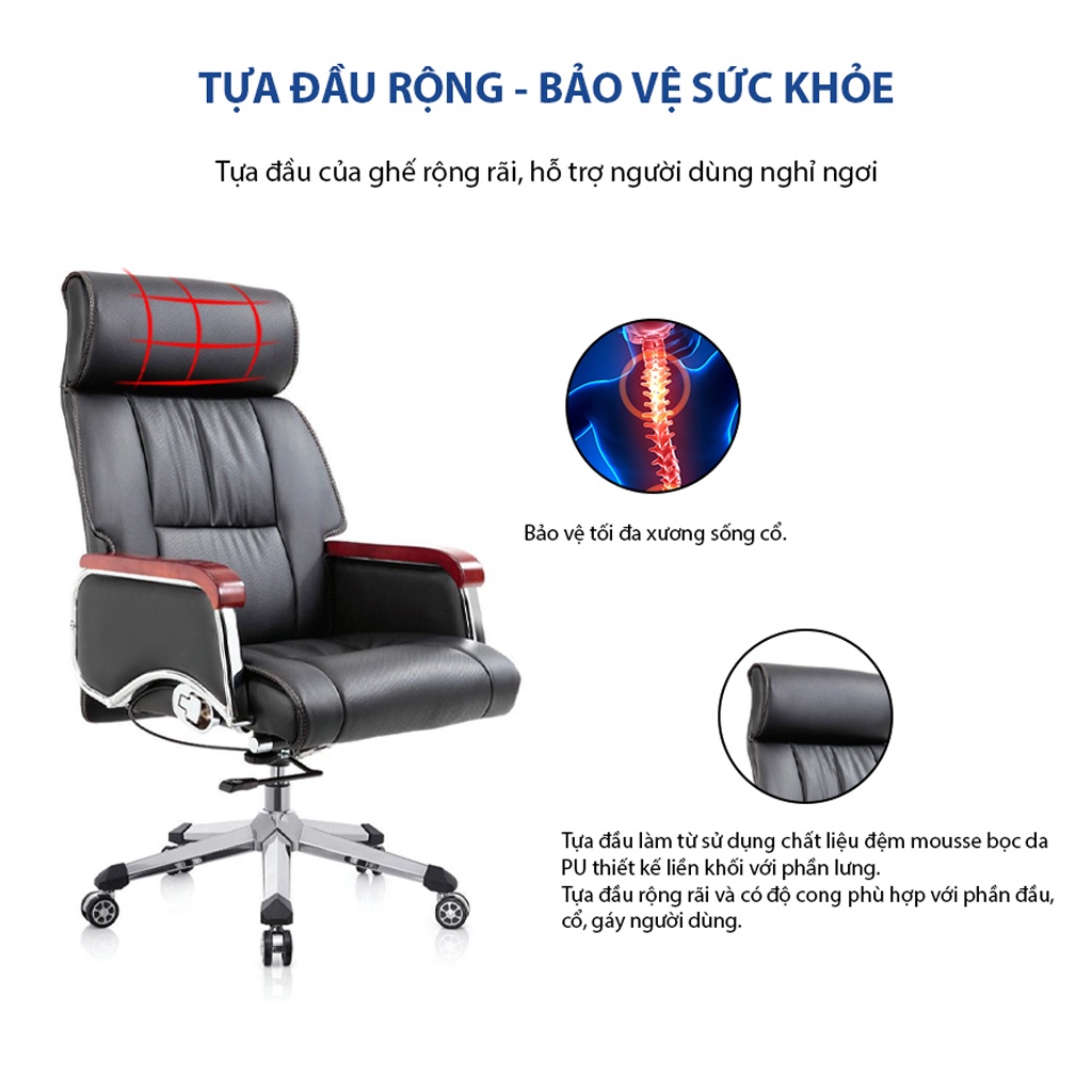 + Ghế lãnh đạo Tintan có lưng da Microfiber, Tay vịn bằng thép mạ Crom bọc da Microfiber.