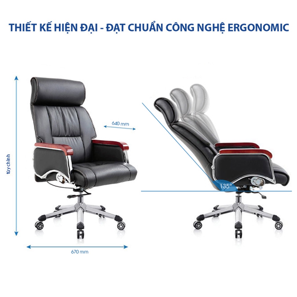 + Thiết kế lưng cao, ghế chân xoay với kiểu dáng hiện đại, kiến tạo không gian làm việc Sang trọng, Chuyên nghiệp, khẳng định đẳng cấp người dùng.