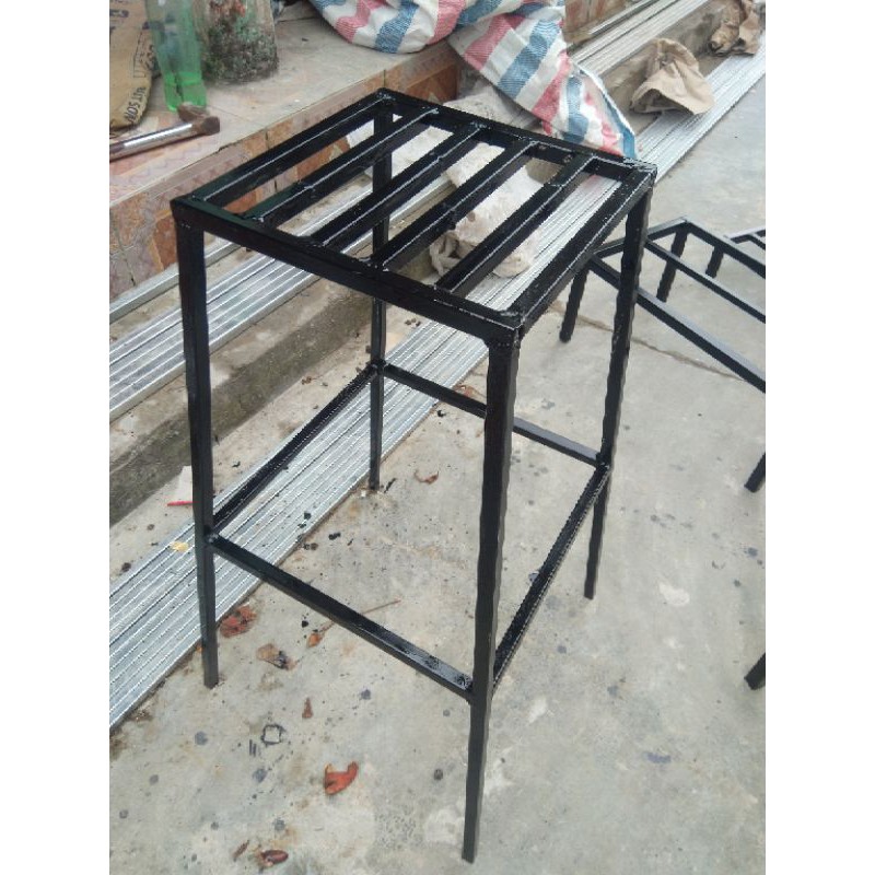Làm bằng hộp thép mạ kẽm 2x2cm. Cao 70cm. chân sải rộng 40cm