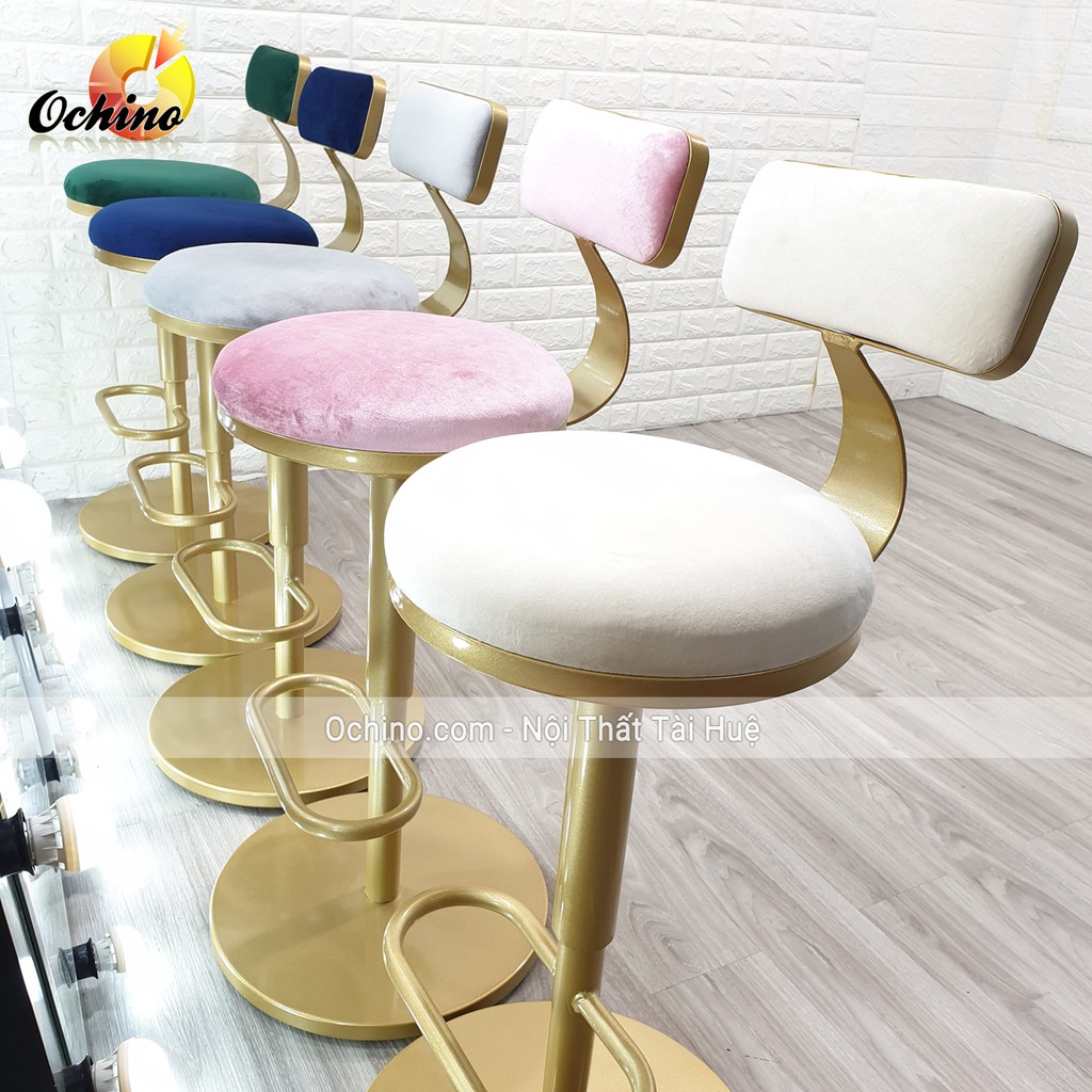 ⭐ Ghế Bar chân mạ vàng có chiều cao từ 55-80cm và xoay 360 dội nha, (HỒNG PHẤN, XÁM , XANH CỔ VỊT, ĐEN TRẮNG...)