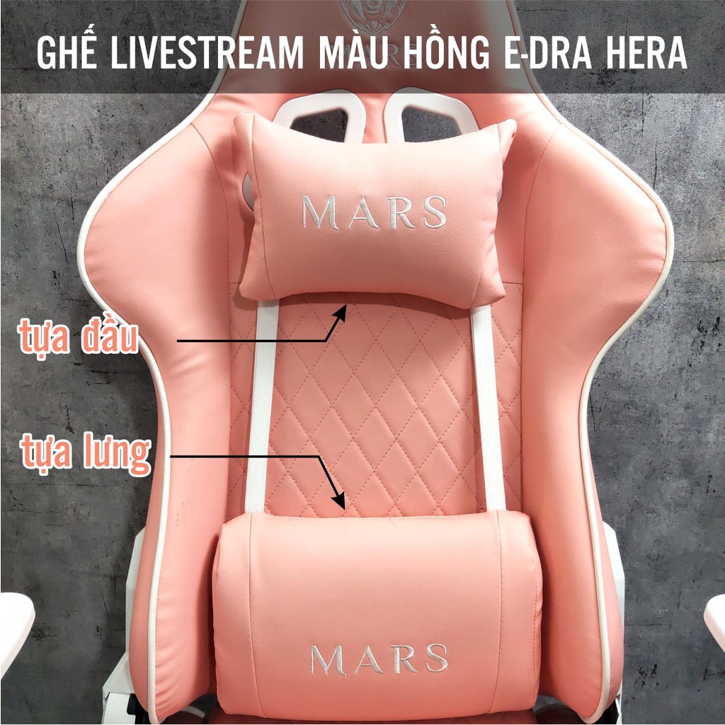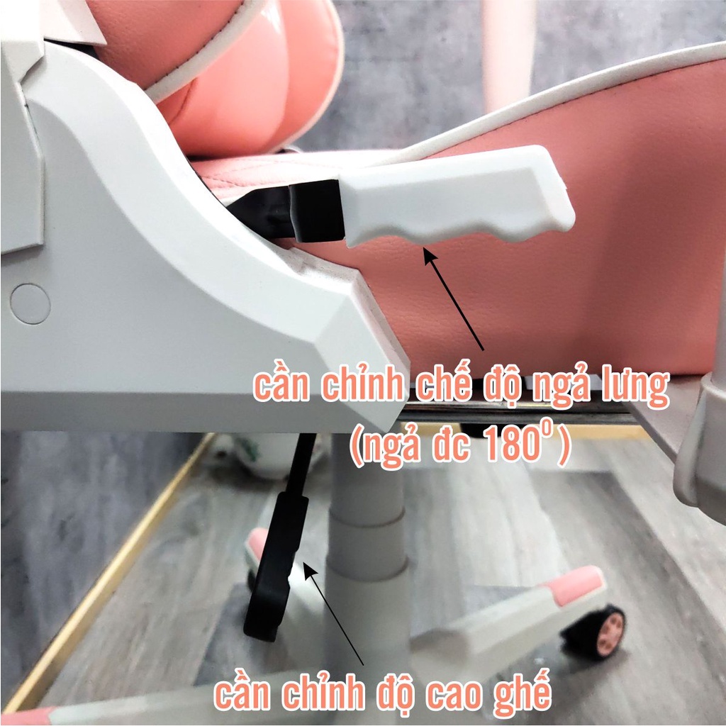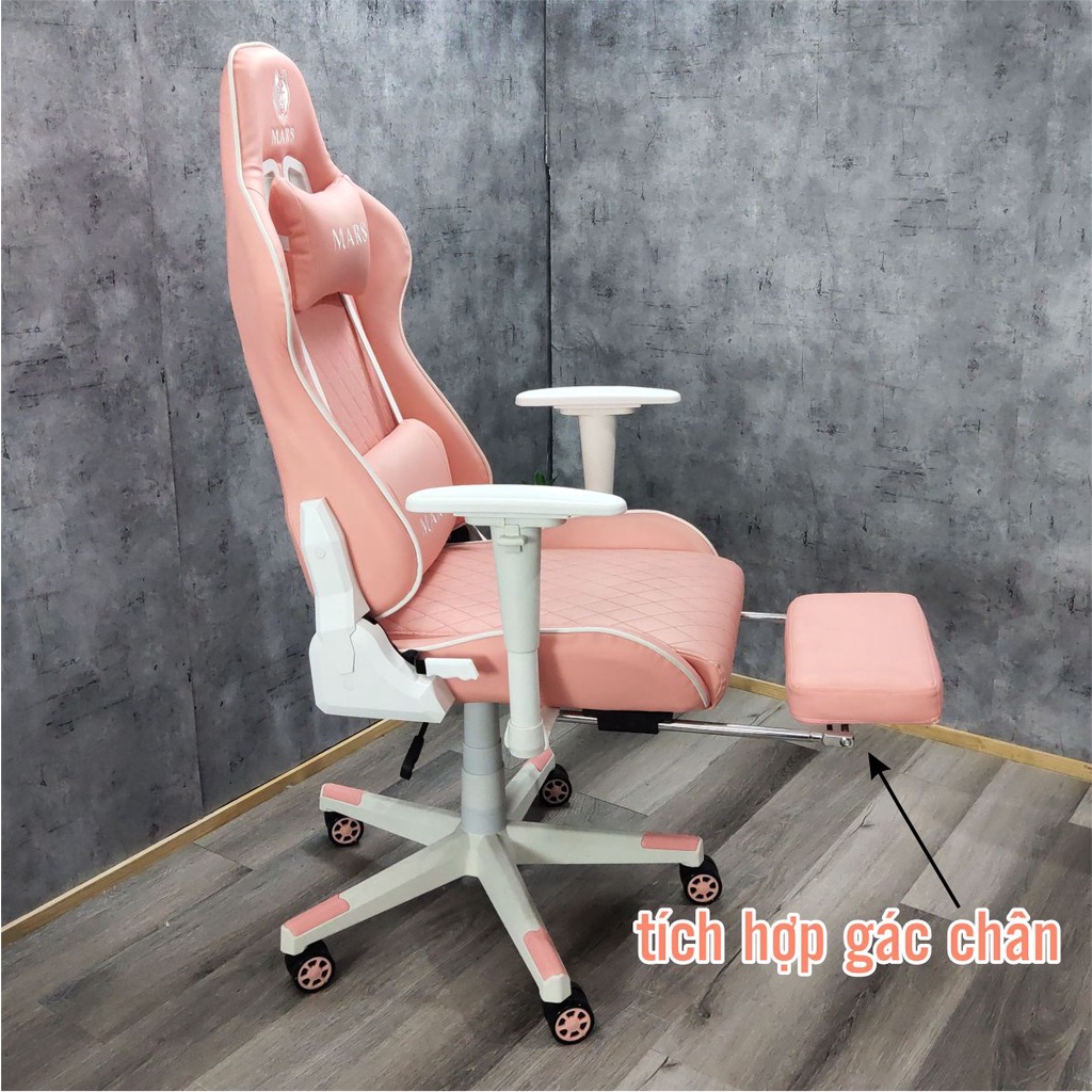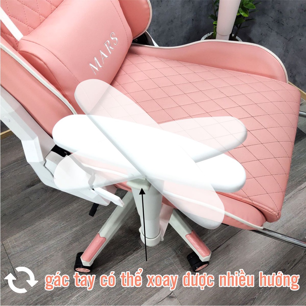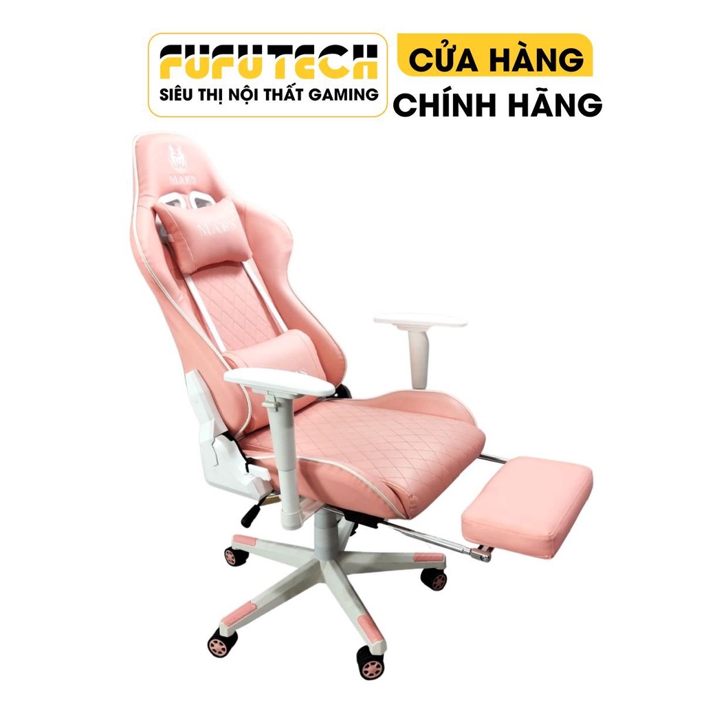 Ghế Gaming Hồng, Ghế Livestream Màu Hồng FUFUTECH Mars chất liệu da PU căng mịn, êm ái phù hợp cho chị em phụ nữ. Ghế có hai phiên bản là không gác chân và kèm gác chân cho bạn tha hồ lựa chọn nè!- Ghế livestream hồng ngã sâu được 180 độ, tay ghế điều chỉnh được.