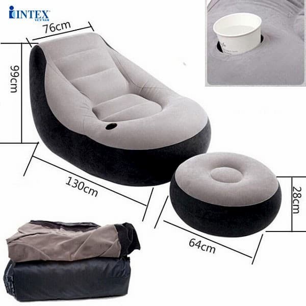 Ghế bơm hơi sofa chính hãng Intex kèm đôn✪ Ghế sofa tựa là một thiết bị hầu như không thể thiếu trong phòng khách cũng như phòng thư giãn của mỗi nhà. Từ trước tới nay, hầu hết mọi người đều sử dụng những loại ghế sofa gỗ, gấp để bày cho phòng của mình. Tuy nhiên, việc cất gọn hay trưng bày như vậy có thể chiếm một phần diện tích cố định của căn phòng cũng như không thể cho bạn những sự thoải mái, êm ái khi ngồi trên đó. Vì vậy, Tiểu Quý Utility đã tìm kiếm và giới thiệu tới các bạn 1 sản phẩm ghế lười sofa bơm hơi êm ái, chắc chắn, có thể thu gọn khi không dùng tới và có một thiết kế hết sức trẻ trung, độc đáo.