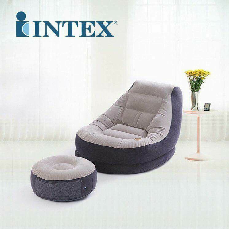 Ghế lười bơm hơi sofa chính hãng Intex - Sofa kèm đôn - Thư giãn nghỉ ngơi bề mặt nhung êm ái - Màu cafe
