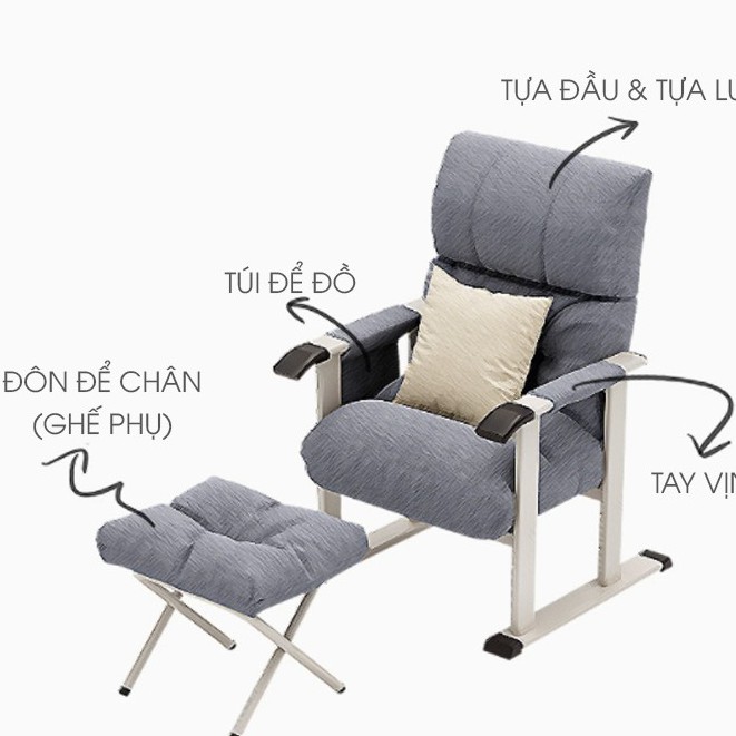 Ghế lười cao cấp đọc sách làm việc thư giãn có thể ngả lưng tặng kèm đôn để chân