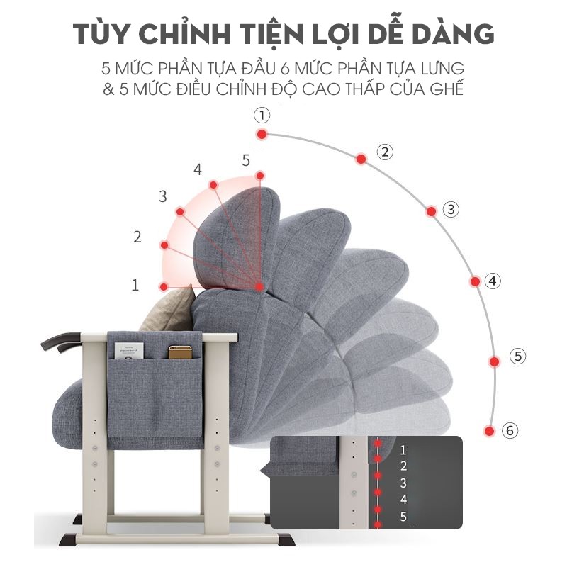 Giới thiệu Ghế lười cao cấp đọc sách làm việc thư giãn có thể ngả lưng tặng kèm đôn để chân