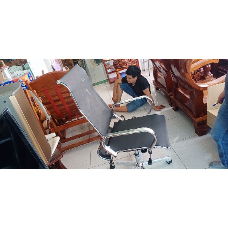 - Ghế có khung thép mạ bọc vải lưới chiụ lực.