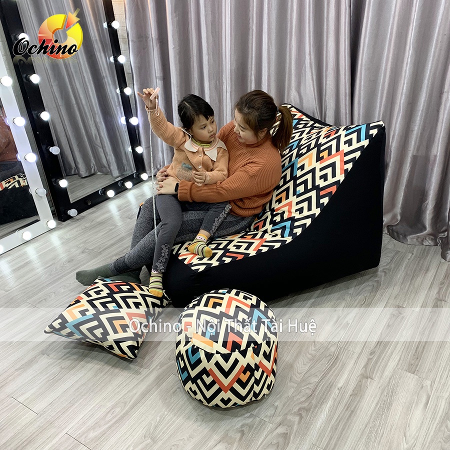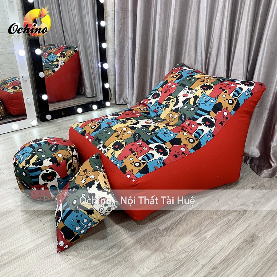 Ghế Lười Hạt Xốp Dáng Sofa Bệt Phong Cách Hiện Đại Gồm 3 Món Size To (Đủ Cả Lõi Xốp)