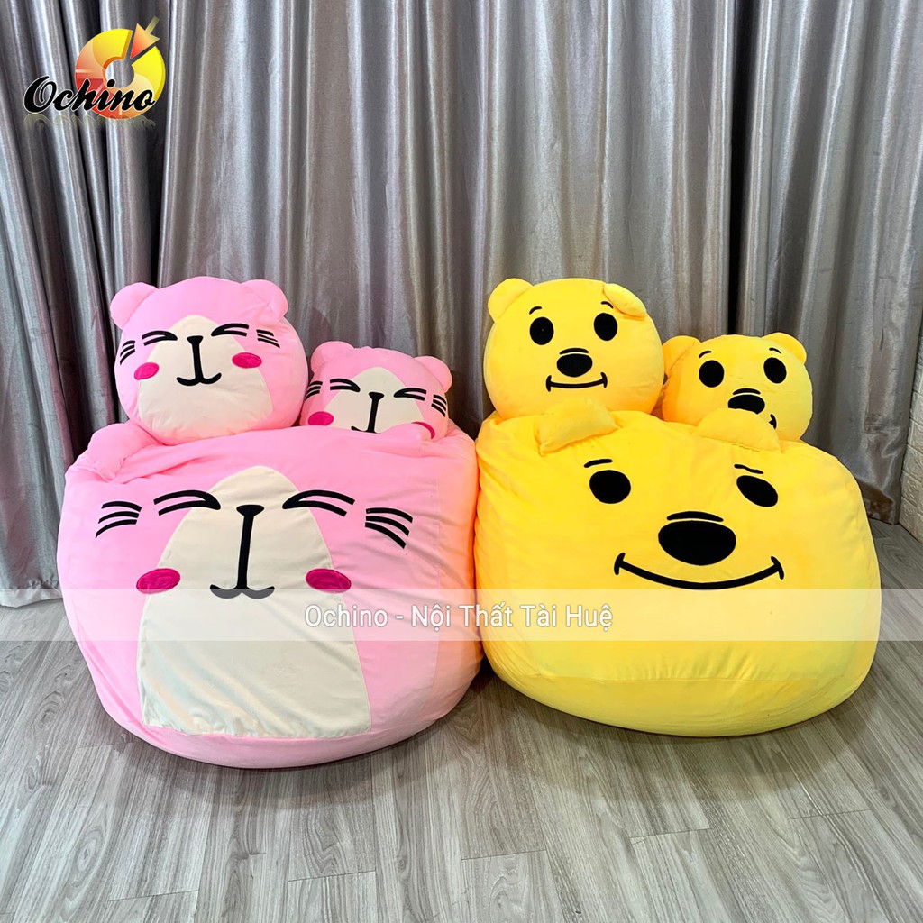 Ghế Lười Hạt Xốp Vải Nhung Hình Thú Ngộ Nghĩnh Gồm 3 món size To 90-120cm ( Đủ cả Lõi Xốp săn Hàng)