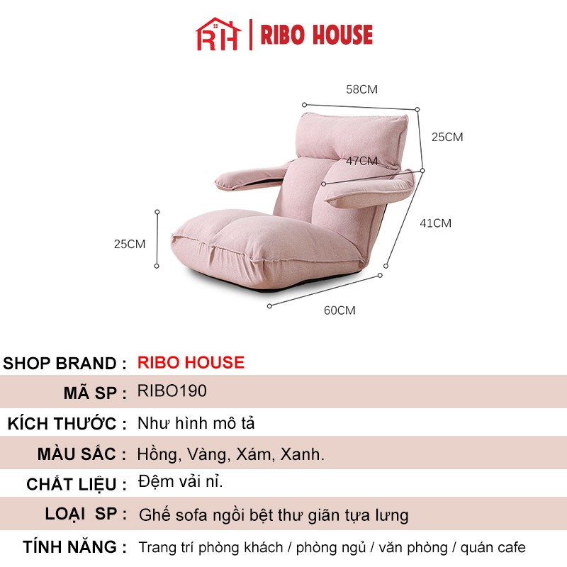 Nhà cửa & Đời sống > Nội thất > Ghế, ghế dài, ghế đẩu || Ghế lười ngồi bệt RIBO HOUSE thư giãn tựa lưng vải nỉ hình robot dùng làm việc đọc sách nằm nghỉ trưa đa năng RIBO190Còn hàng