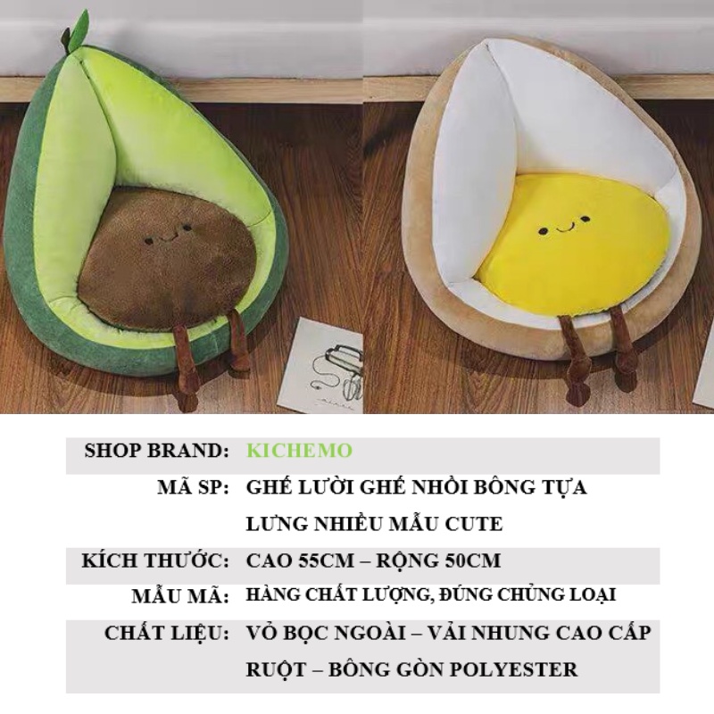 GHẾ DỰA BÔNG NHIỀU HÌNH CUTE🌺 CHẤT LIỆU: Vỏ bọc bên ngoài làm bằng vải nhung cao cấp. Ruột làm từ bông gòn (polyester)