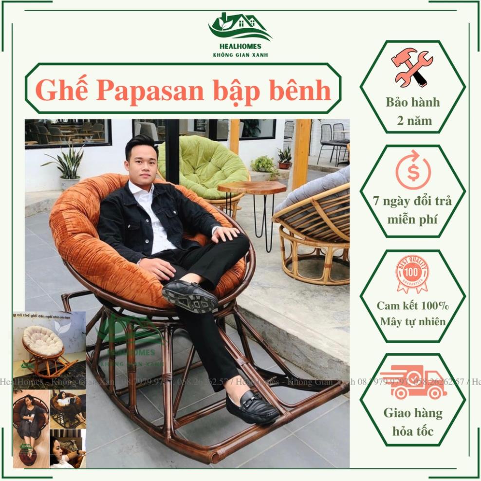 Ghế lười thư giãn bập bênh papasan mây phòng ngủ cho bé, trang trí phòng khách nghỉ ngơi đọc sách / HealHomes⚡️⚡️⚡️ QUÝ KHÁCH LƯU Ý NHẮN TIN RIÊNG CHO SHOP ĐỂ CHỌN MÀU NỆM ⚡️⚡️⚡️