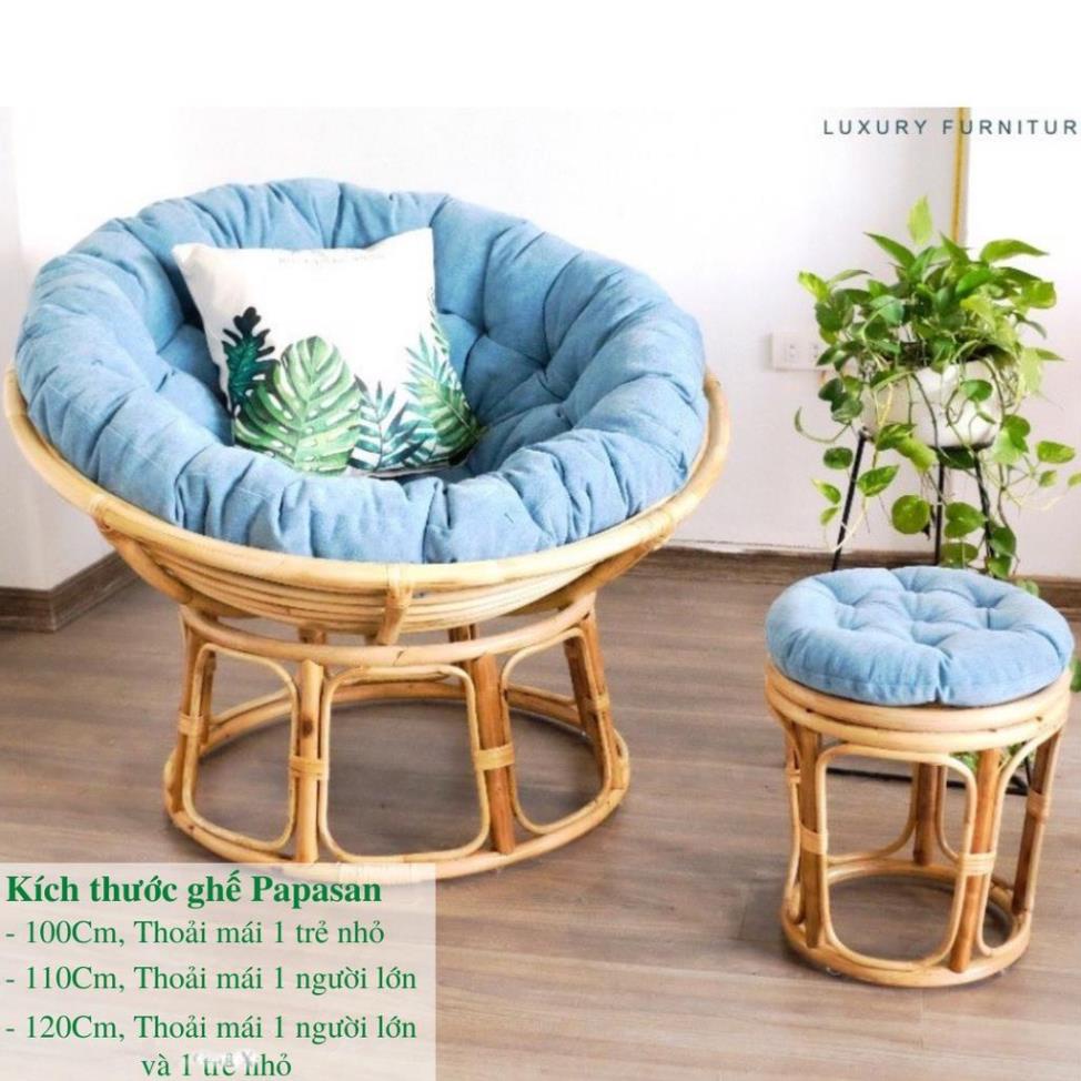 - Đôn Papasan là sự kết hợp không thể thiếu khi đi cùng với ghế Papasan. Đây là cầu nối tuyệt vời giữa sự thoải mái và sự thoải mái tột độ